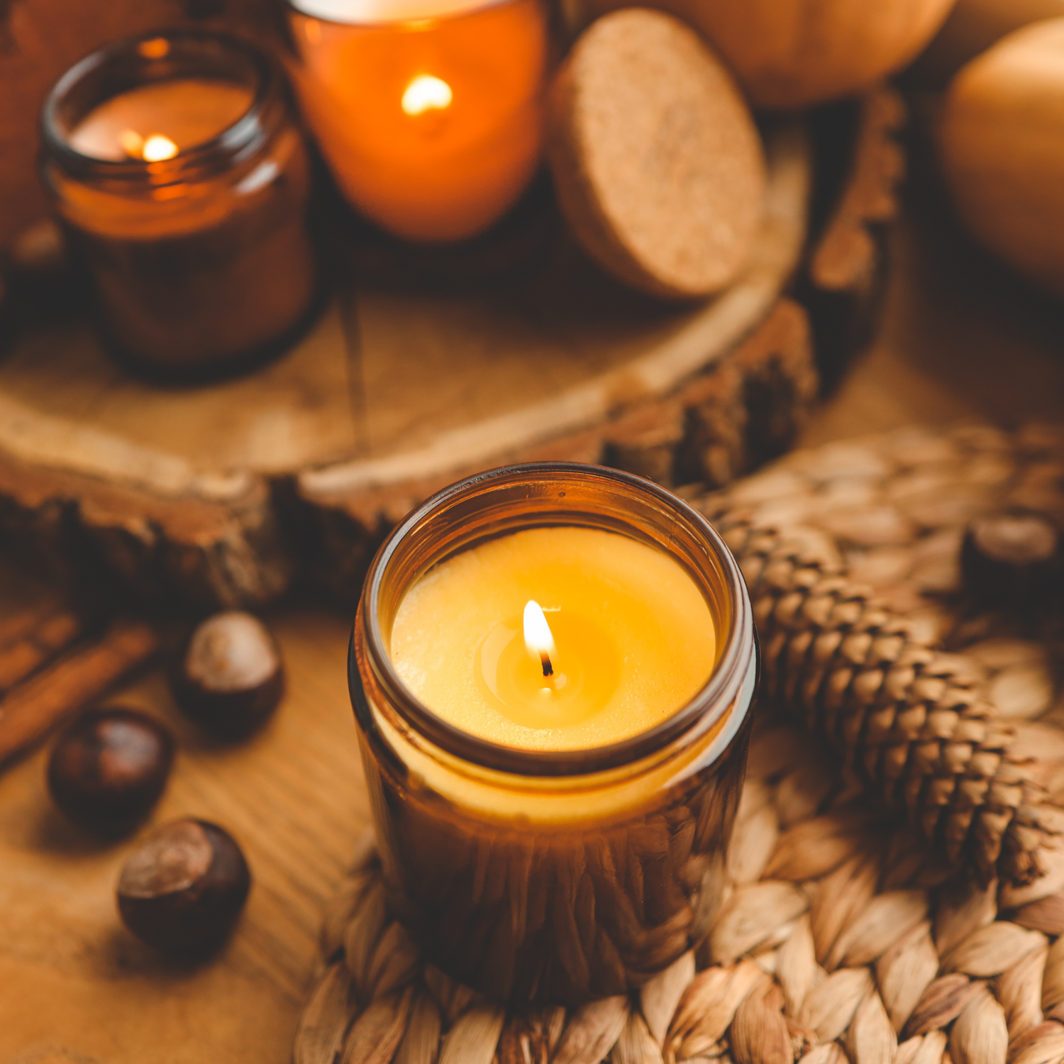 All natural non toxic beeswax candles hand poured. In amber glass jars...